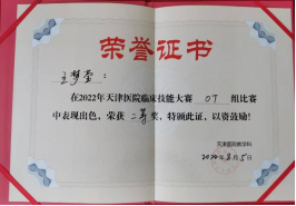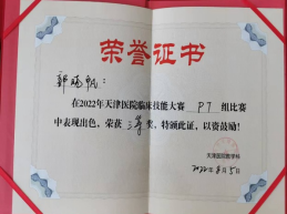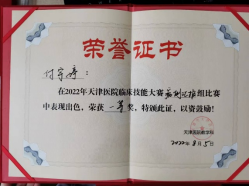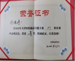 2022年8月5日,我校康复治疗学专业实习基地—天津医院组织了首届临床技能竞赛,我校康复治疗学专业学生在47名参赛学生中脱颖而出,荣获案例汇报一等奖1项,技能操作一等奖1项,二等奖3项,三等奖3项。